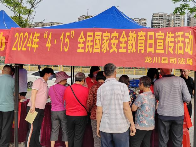 4月15日上午,县司法局联合县委国安办、县委政法委、县公安局、县机要局、县保密局等单位在龙川县文化广场开展“4·15”全民国家安全日宣传活动。